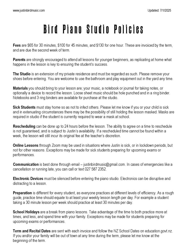 - Guidance through the examination systems of New Zealand is offered along with ear training, sightreading training, and participation in local competitions encouraged.